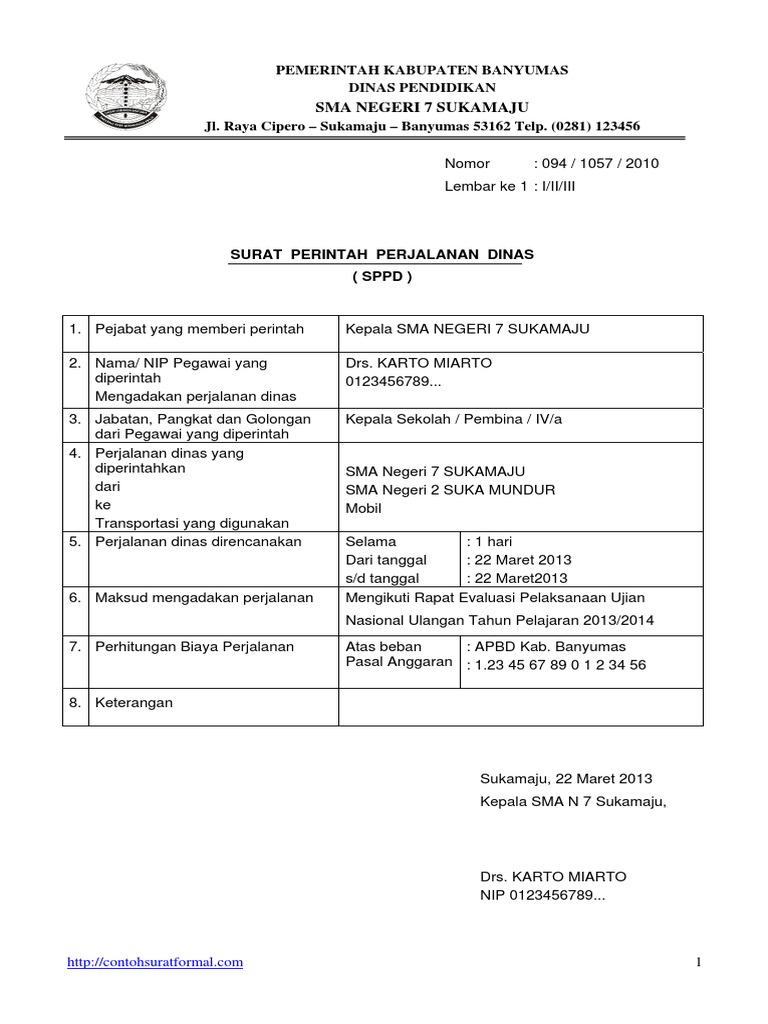 Selain sebagai bukti sejarah dokumen tertulis, surat dinas juga sebagai umumnya surat dinas dipergunakan sebagai bentuk kedinasan. Surat tugas ini terkadang disebut juga surat perintah tugas atau disingkat spt. Surat ini dikeluarkan oleh suatu instansi atau lembaga kepada pejabat atau karyawan untuk melakukan perjalanan dinas sebagai bukti penugasannya di suatu tempat dari instansi ia. Kemudian, jika anda membutuhkannya sebagai referensi, ada banyak contoh surat tugas telah kami siapkan dalam format file dokumen word doc dan pdf pada tautan di atas. 18 april 2016 sifat : Berikut contoh surat dinas dari instansi pemerintahan resmi yang dibuat sebagai sampel acuan, bukan surat dinas sebenarnya yang dikeluarkan lembaga terkait. Permohonan melakukan perjalanan dinas ke kota indah sekali sebagai perwakilan peresmian pembukaan. 19640718 198703 1 010 pemerintah kabupaten purworejo dinas pendidikan dan kebudayaan sekolah menengah atas negeri 7 purworejo jl. Surat dinas adalah surat yang dibuat oleh instansi resmi atau dinas yang berguna untuk berbagai kepentingan tertentu. Adapun nama anggota tim yang. Mungkin ada banyak orang yang mencari contoh surat kerja doc untuk kemudian didownload dan diedit sesuai dengan keinginan. Contoh format sppd (surat perintah perjalanan dinas).doc. Surat perintah perjalanan dinas (sppd).docx.